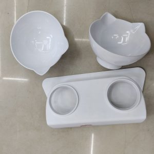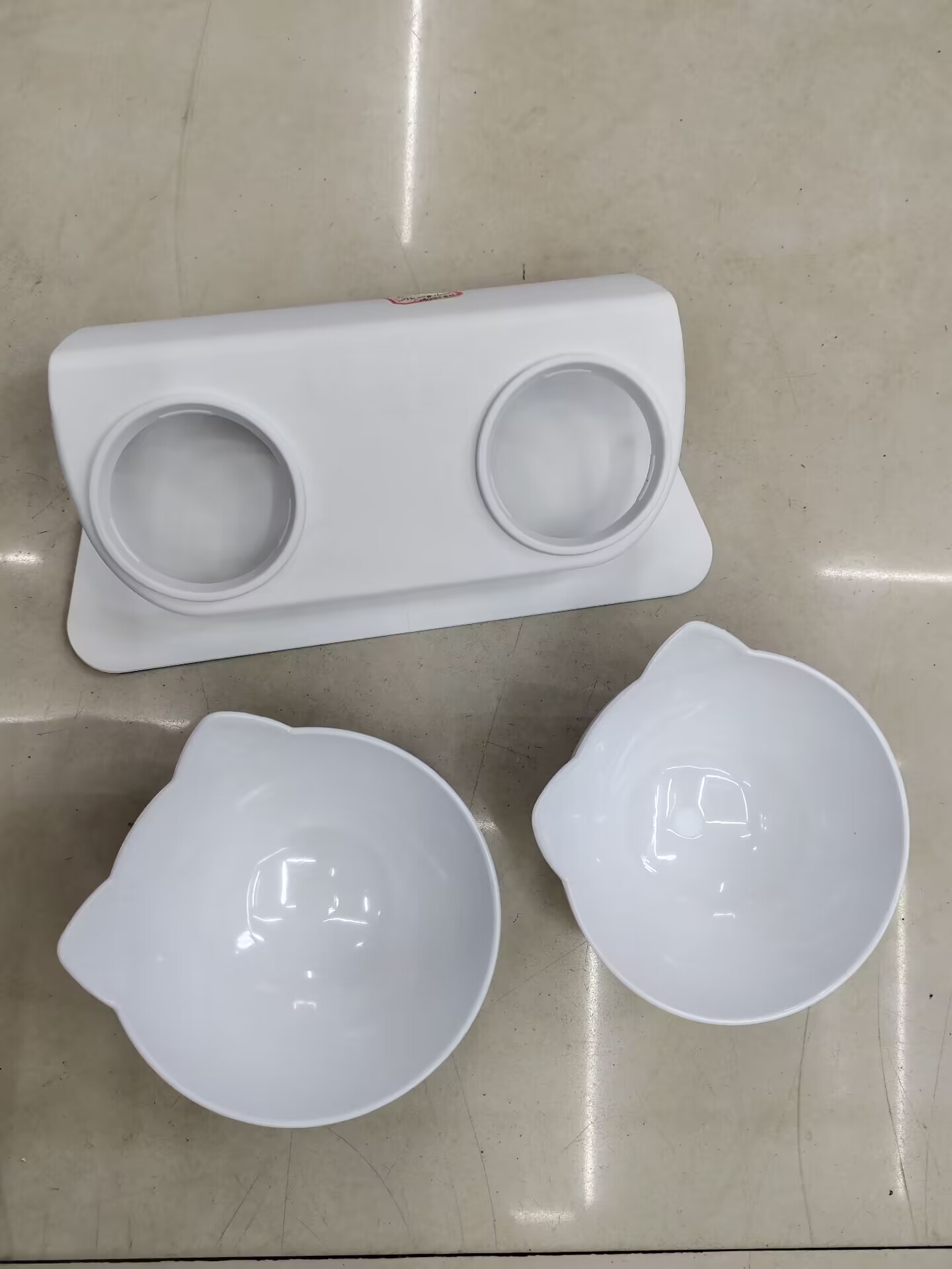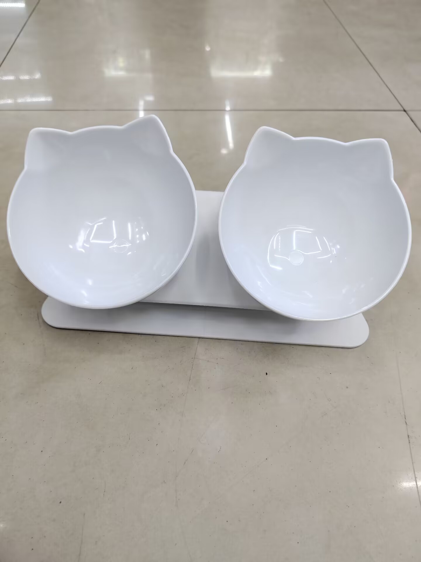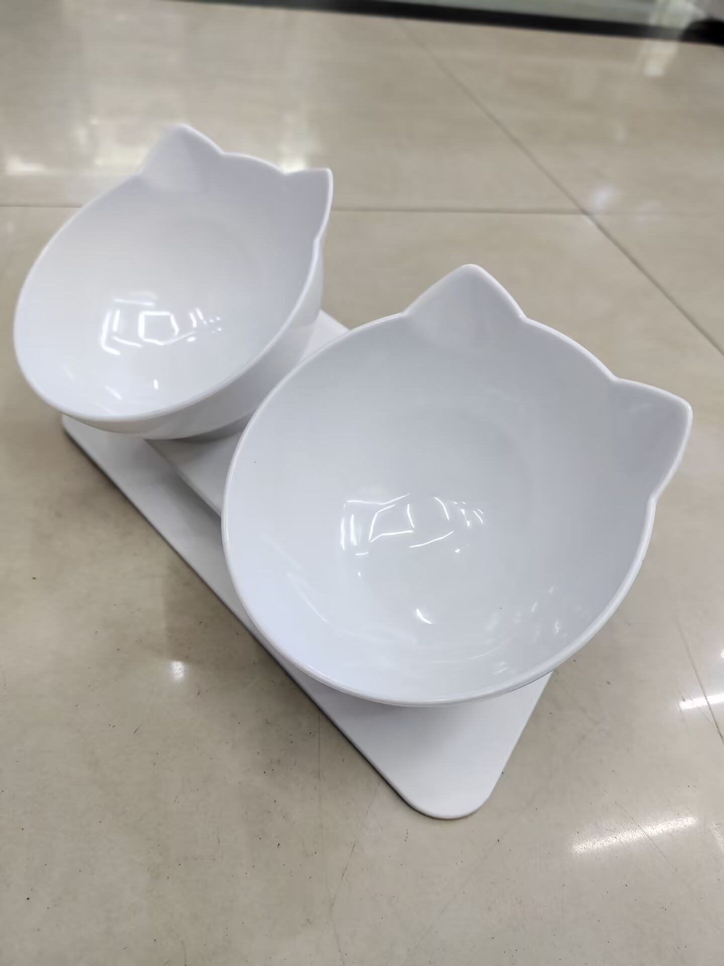 宠物食盆 猫咪碗 狗碗 倾斜护颈猫耳双碗